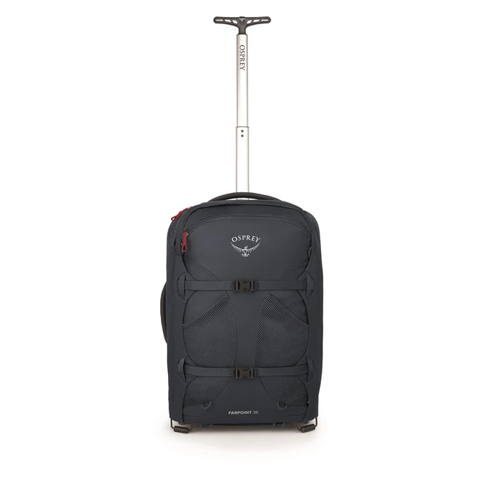 De Farpoint Wheels 36 van het merk Osprey is de perfecte reisgenoot. Het interieur is voorzien van twee compressiebanden en twee organizer mesh-vakken. De banden van de rugzak zijn weg te werken achter een oprolbaar achterpaneel. De rugzak is comfortabel te dragen dankzij de gewatteerde schouderbanden en rugpanneel. Ook kun je de rugzak meetrekken dankzij de meertraps trekstang en de twee soepele wielen.De koffer voldoet aan de IATA-norm en mag mee aan boord als handbagage bij de meeste luchtvaartmaatschappijen.